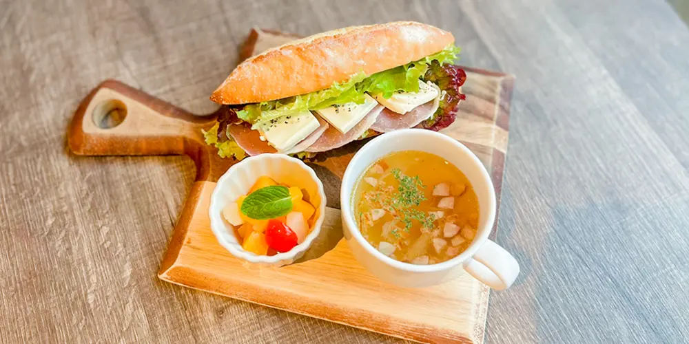 選べる4種(洋食・和食・カレー・サラダ)のプレートと、ハーフビュッフェが楽しめる朝食。 洋食は、季節ごとに内容が変わるこだわりのサンドイッチをご用意。ヘルシーながら満足感のある味わいをお楽しみいただけます。 和朝食は、焼魚と手作り小鉢を彩りよく盛り合わせ、栄養バランスに優れた一膳です。 ビーフカレーやサラダプレートもご用意しており、その日の気分に合わせて一日のスタートに必要なエネルギーをしっかりチャージいただけます。 ハーフビュッフェには、ドリンク、日替わりパン、シリアル、ヨーグルトをご用意しております。